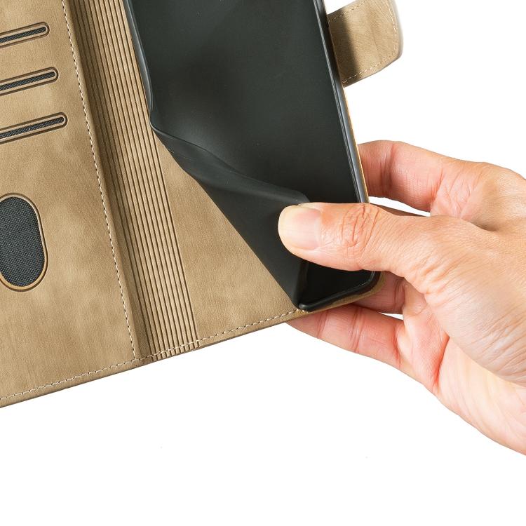 For Samsung Galaxy A56 5G Pen Heart Cat Embossed Leather Phone Case(Apricot)