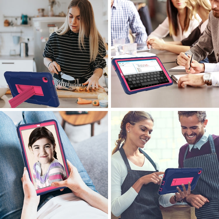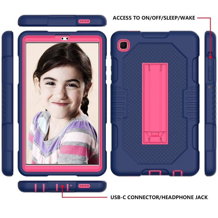 For Samsung Galaxy A7 Lite T220 Contrast Color Robot Shockproof Silicone + PC Tablet Case(Navy Blue Rose)