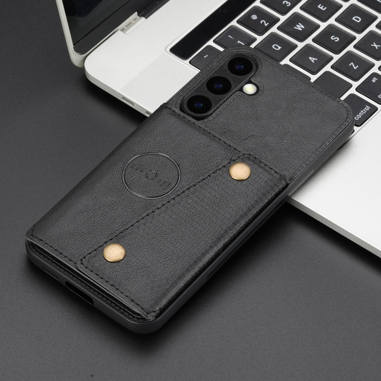 For Samsung Galaxy S25 5G Double Buckle Card Slots Magnetic Phone Case(Black)