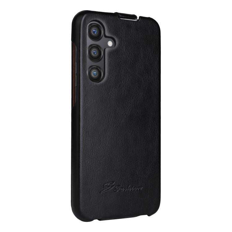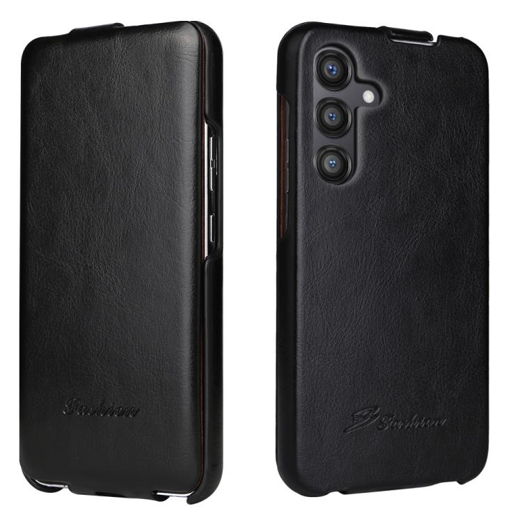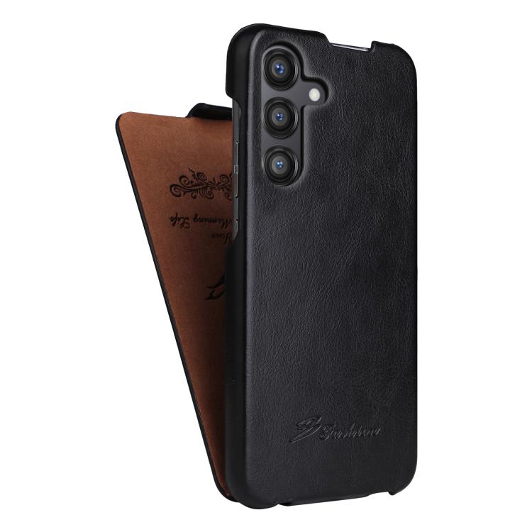 For Samsung Galaxy S25 5G Fierre Shann 64 Texture Vertical Flip PU Leather Phone Case(Black)