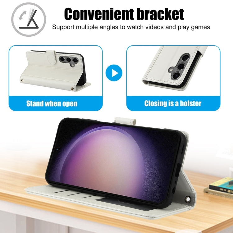 For Samsung Galaxy S25 5G Skin Feel Pure Color Card Slots Leather Phone Case with Dual Lanyard(White)
