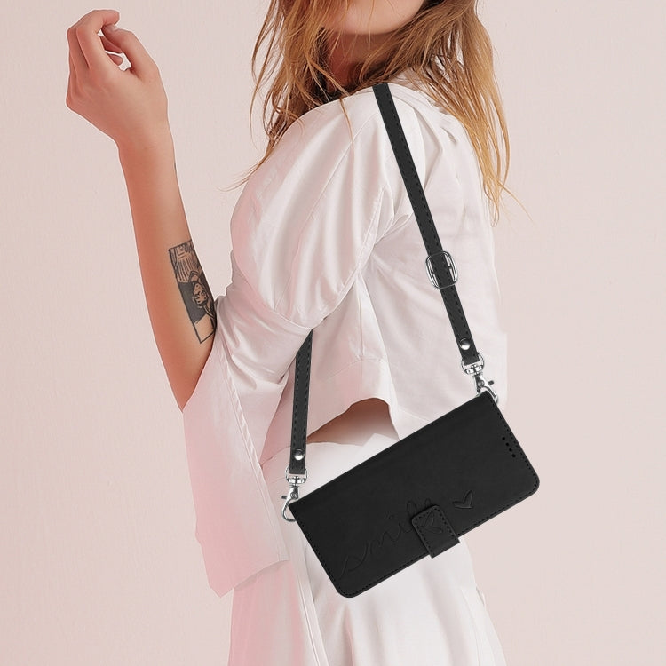 For Samsung Galaxy S25+ / S24+ 5G Skin Feel Heart Embossed Leather Phone Case with Long Lanyard(Black)