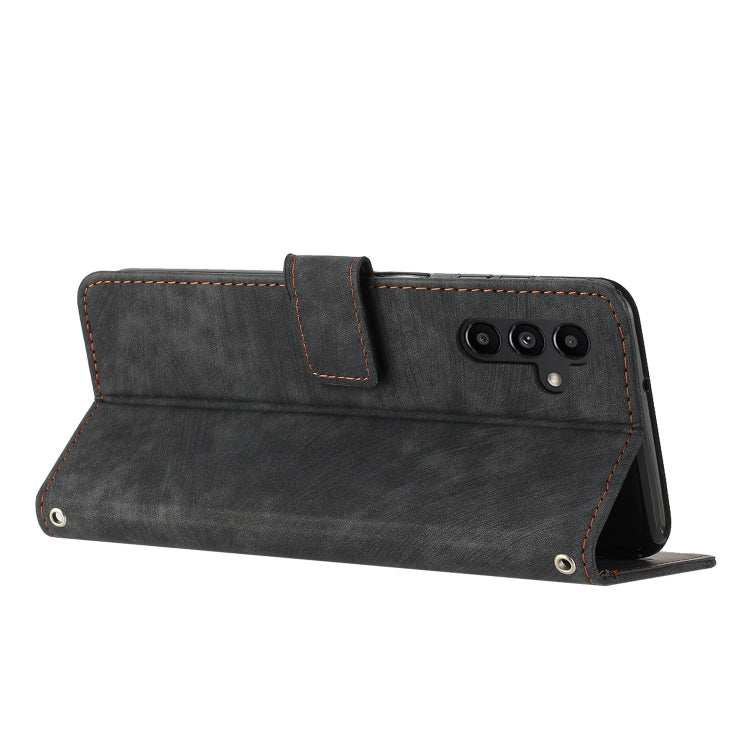 For Samsung Galaxy S25+ / S24+ 5G Skin Feel Stripe Pattern Leather Phone Case with Lanyard(Black)
