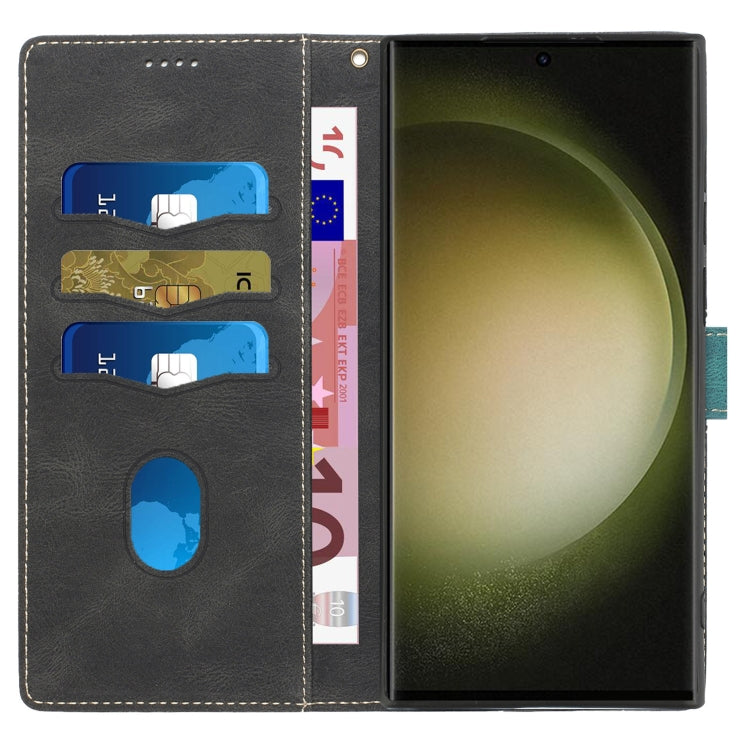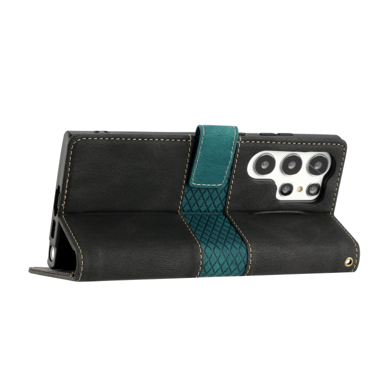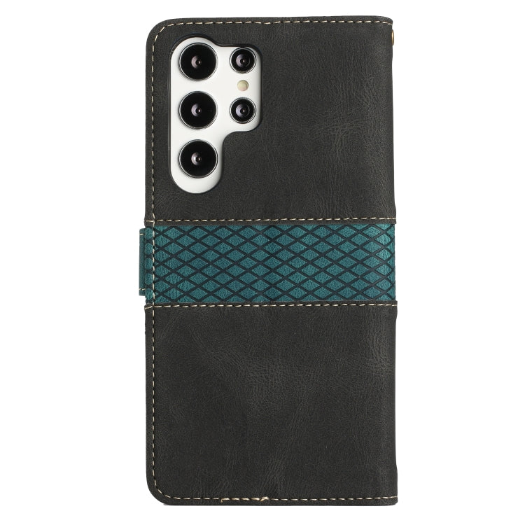 For Samsung Galaxy S25 Ultra 5G Grid Stitching Leather Phone Case with Lanyard(Black)