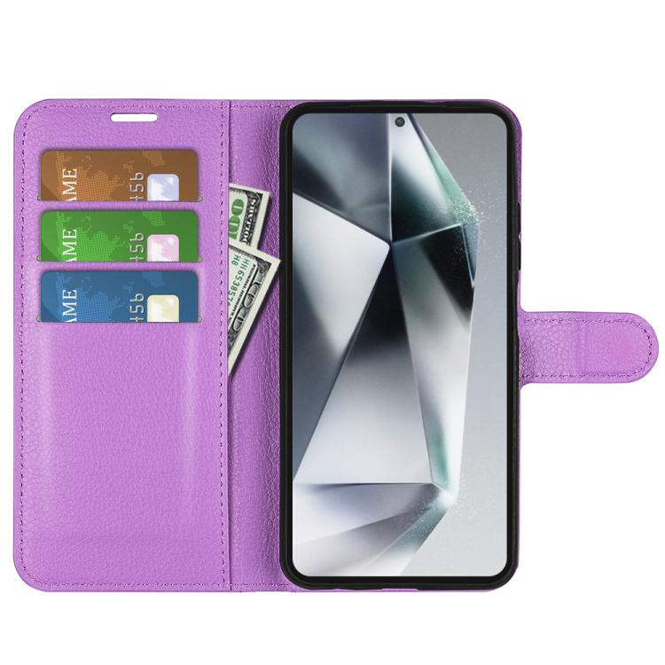For Samsung Galaxy S25 Ultra 5G Litchi Texture Horizontal Flip Leather Phone Case with Holder(Purple)