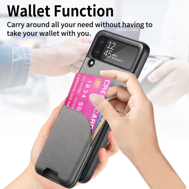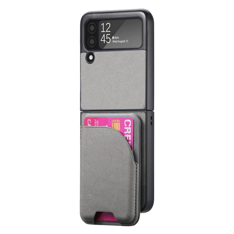 For Samsung Galaxy Z Flip3 5G Twill Fabric Leather Skin Card Bag Magnetic Back Phone Case(Gray)