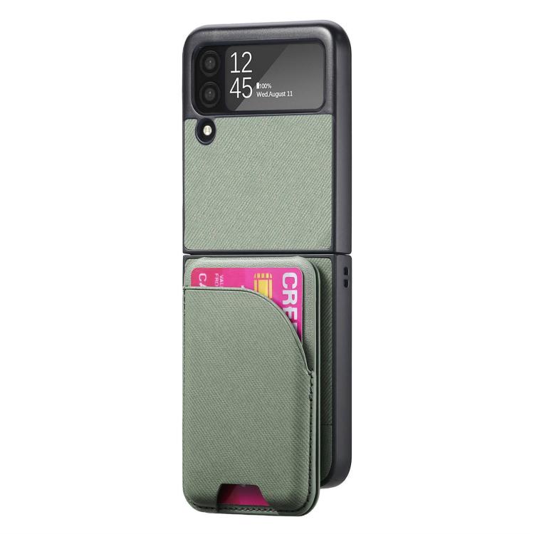 For Samsung Galaxy Z Flip3 5G Twill Fabric Leather Skin Card Bag Magnetic Back Phone Case(Green)