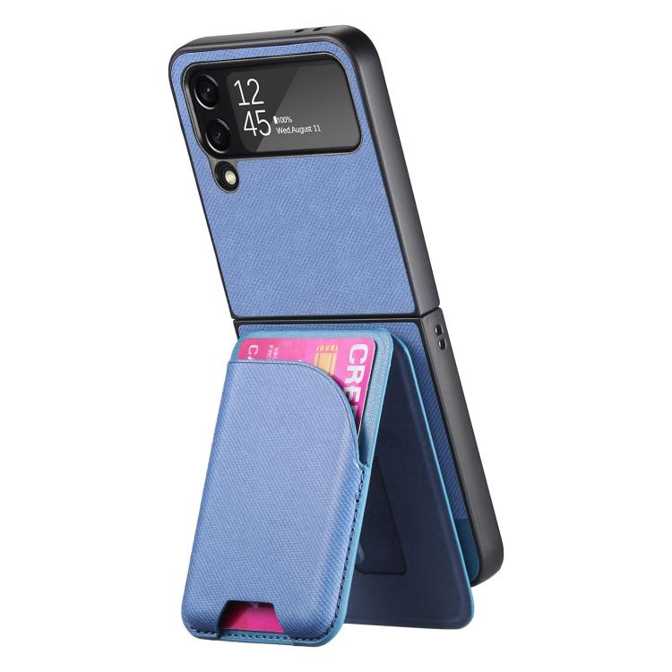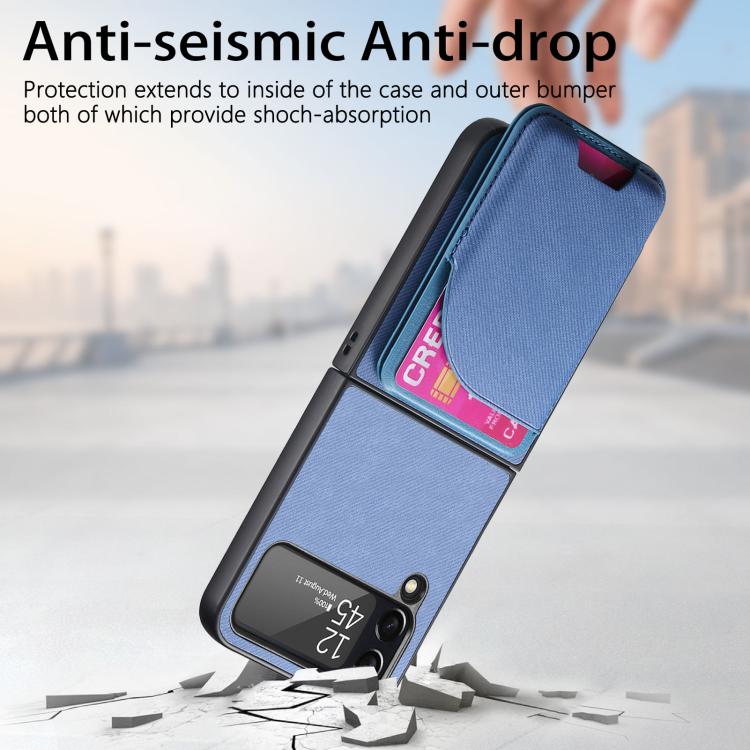 For Samsung Galaxy Z Flip4 Twill Fabric Leather Skin Card Bag Magnetic Back Phone Case(Blue)