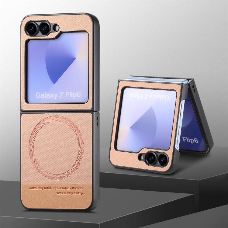For Samsung Galaxy Z Flip4 Twill Fabric Leather Skin Magnetic Back Phone Case(Pink)