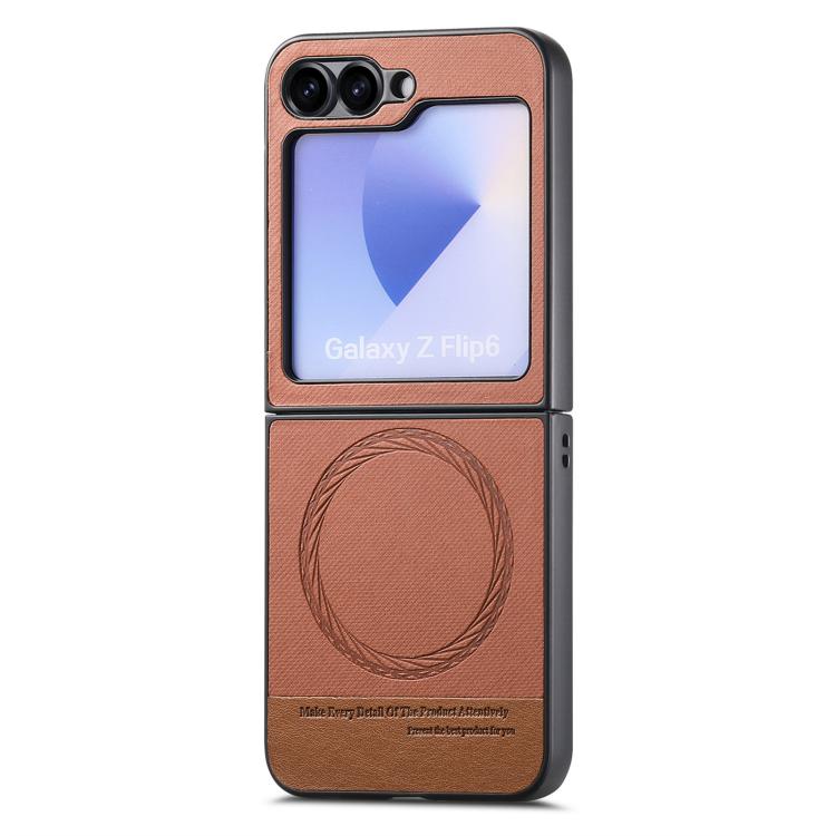 For Samsung Galaxy Z Flip5 Twill Fabric Leather Skin Magnetic Back Phone Case(Brown)