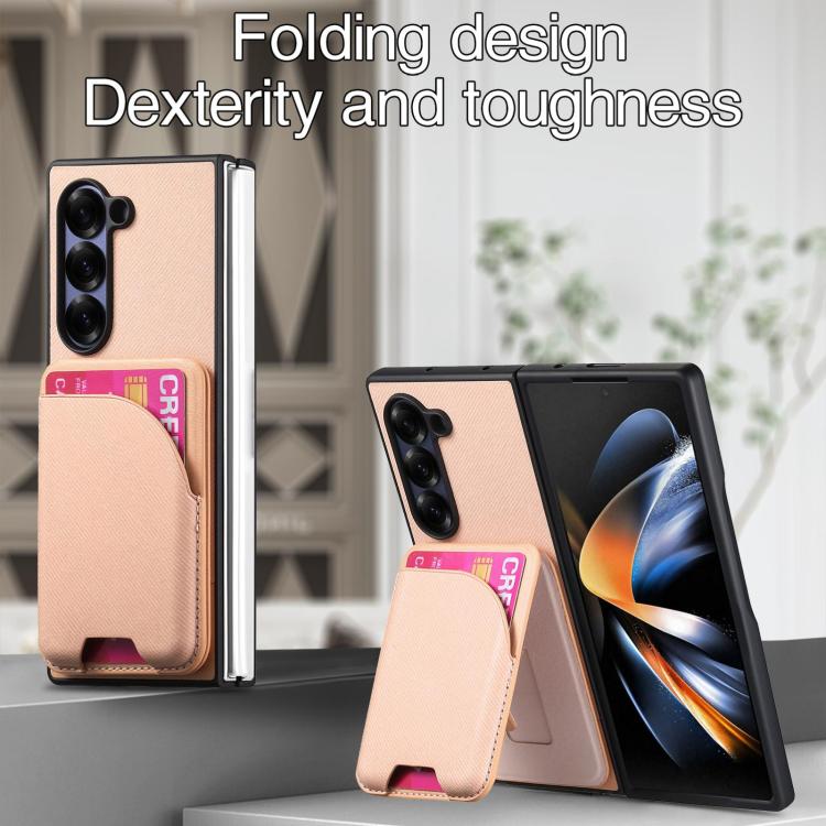 For Samsung Galaxy Z Fold3 5G Twill Fabric Leather Skin Card Bag Magnetic Back Phone Case(Pink)