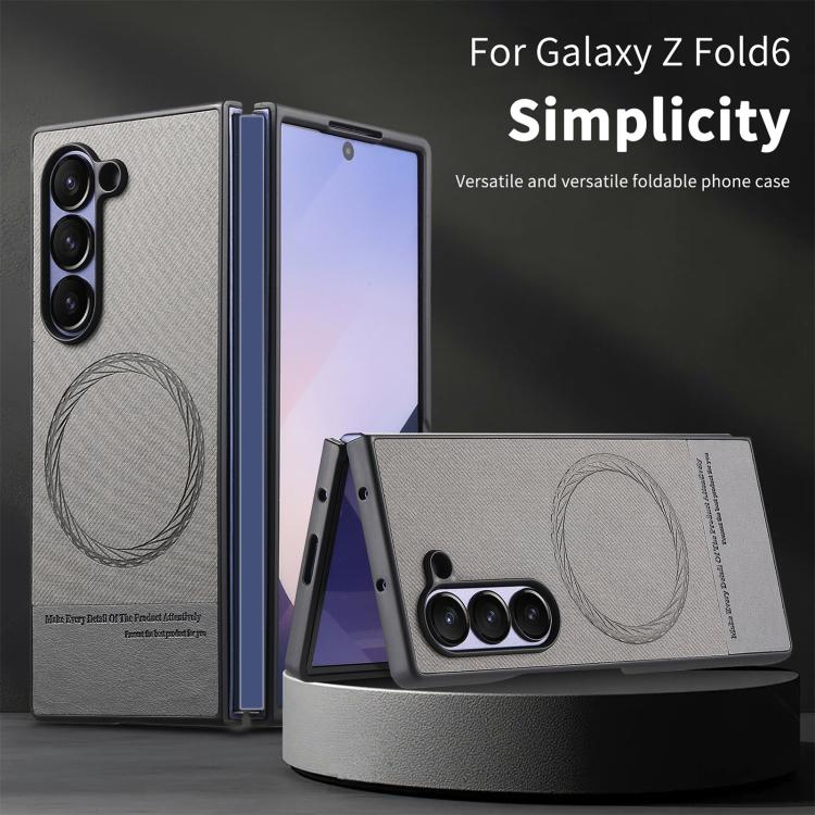 For Samsung Galaxy Z Fold3 5G Twill Fabric Leather Skin Magnetic Back Phone Case(Gray)