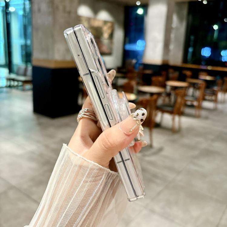 For Samsung Galaxy Z Fold4 Pearlescent Shell Texture MagSafe Phone Case(Pink Green)