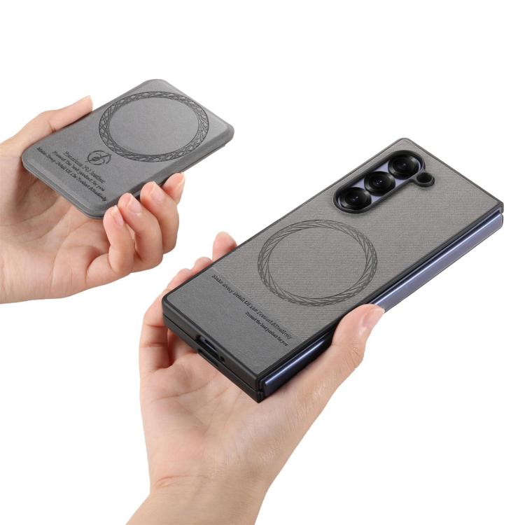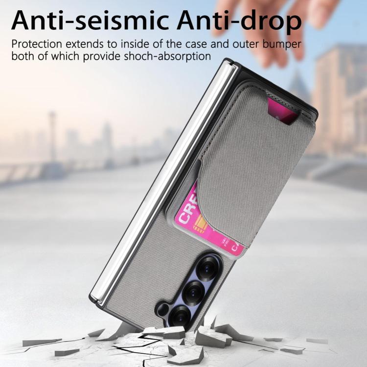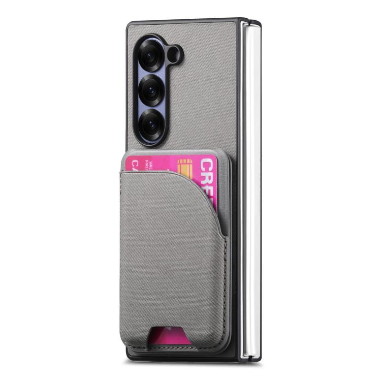 For Samsung Galaxy Z Fold4 Twill Fabric Leather Skin Card Bag Magnetic Back Phone Case(Gray)