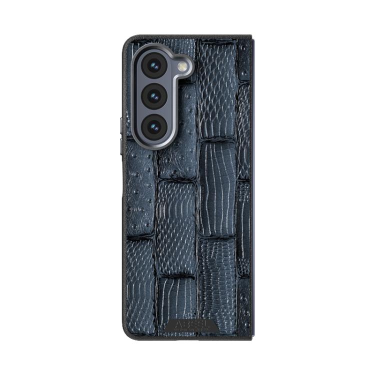 For Samsung Galaxy Z Fold5 5G ABEEL Beast Pattern 6D Micro-Embossed MagSafe Genuine Leather Phone Case(Blue)
