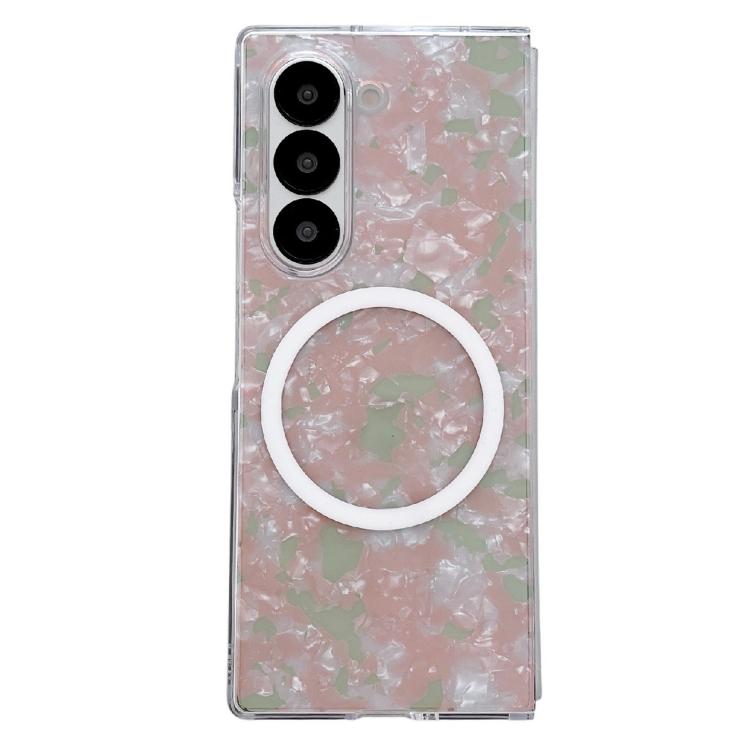 For Samsung Galaxy Z Fold5 Pearlescent Shell Texture MagSafe Phone Case(Pink Green)
