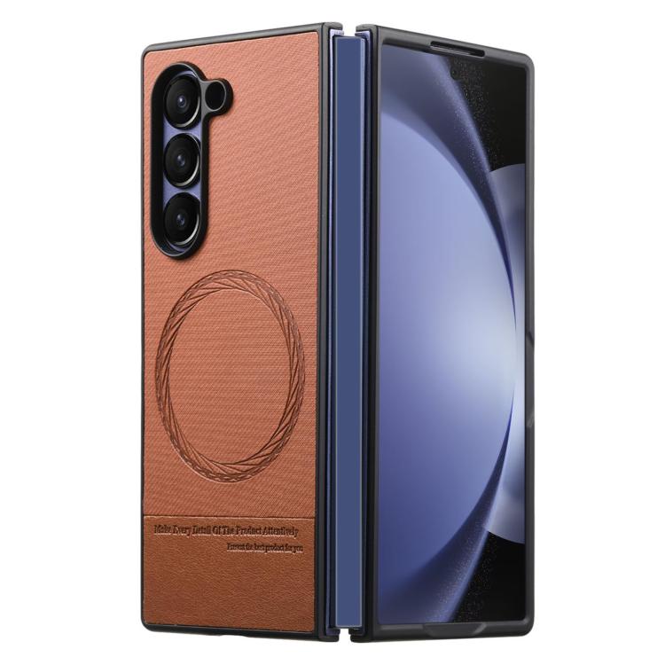 For Samsung Galaxy Z Fold5 Twill Fabric Leather Skin Magnetic Back Phone Case(Brown)