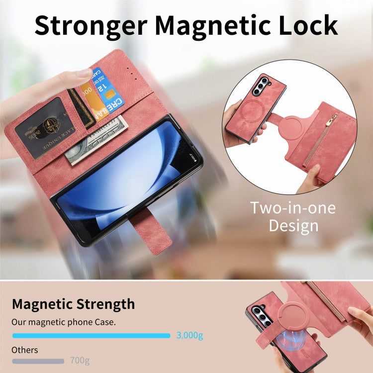 For Samsung Galaxy Z Fold6 5G Retro MagSafe Magnetic Zipper Wallet Leather Phone Case(Pink)