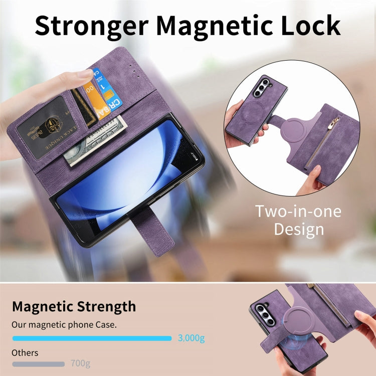 For Samsung Galaxy Z Fold6 5G Retro MagSafe Magnetic Zipper Wallet Leather Phone Case(Purple)
