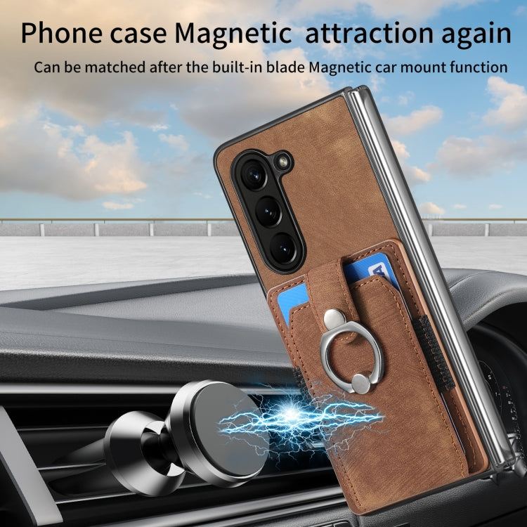 For Samsung Galaxy Z Fold6 5G Retro Skin-feel Ring Multi-card Wallet Phone Case(Brown)