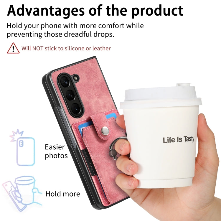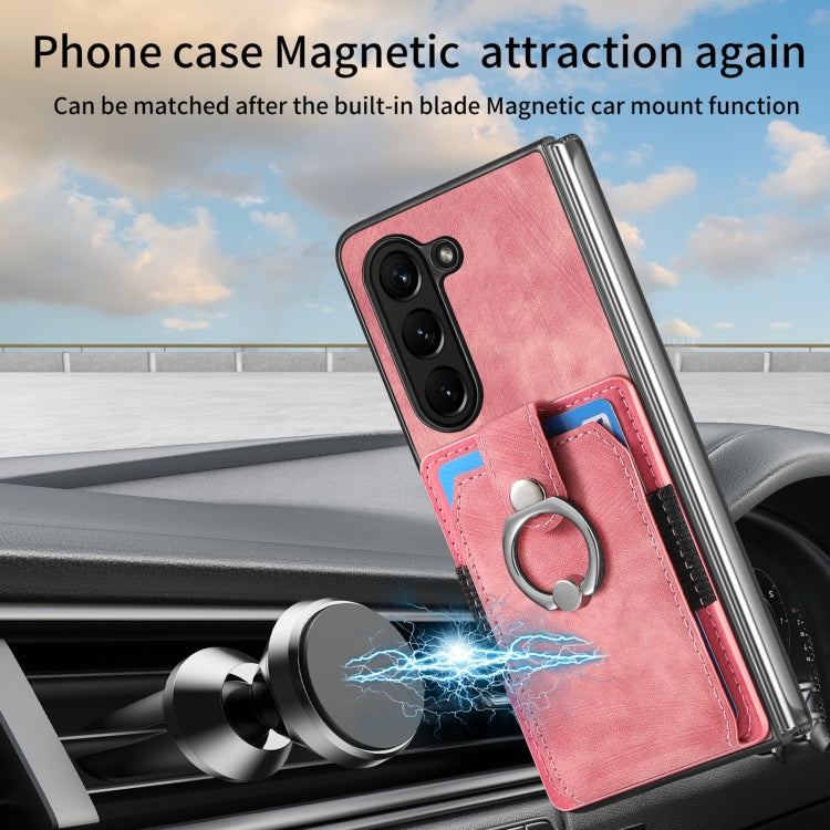 For Samsung Galaxy Z Fold6 5G Retro Skin-feel Ring Multi-card Wallet Phone Case(Pink)