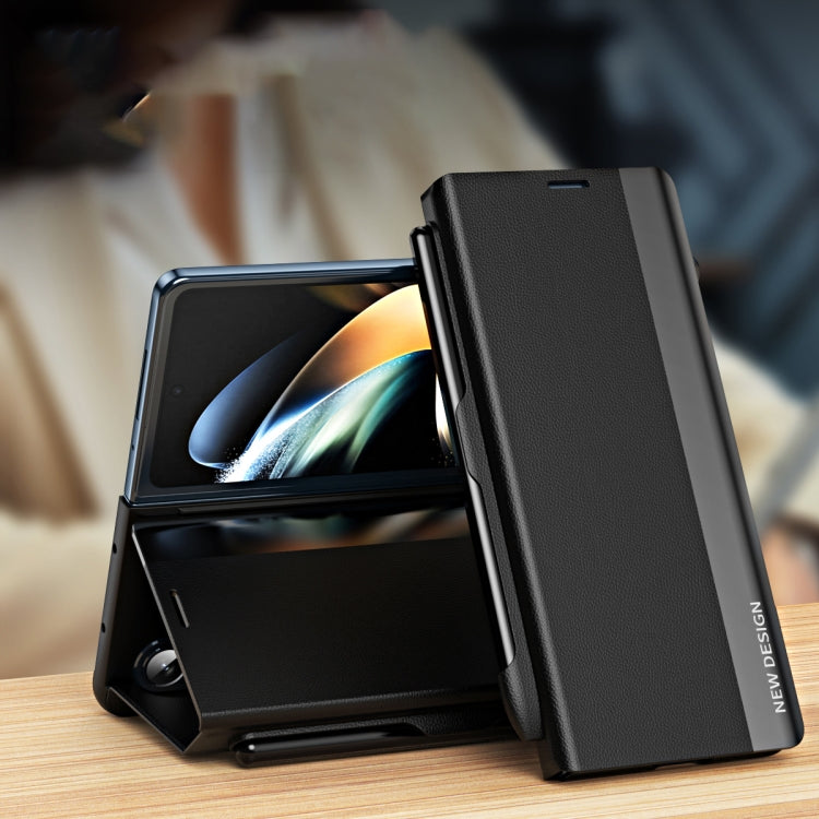 For Samsung Galaxy Z Fold6 5G Side Electroplated Adsorption Leather Phone Case with Pen Slot(Blue)