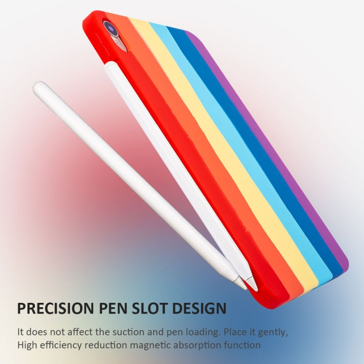 Liquid Silicone Magnetic Pen Function Tablet Case for iPad Air 2020 / 2022 10.9(Rainbow)