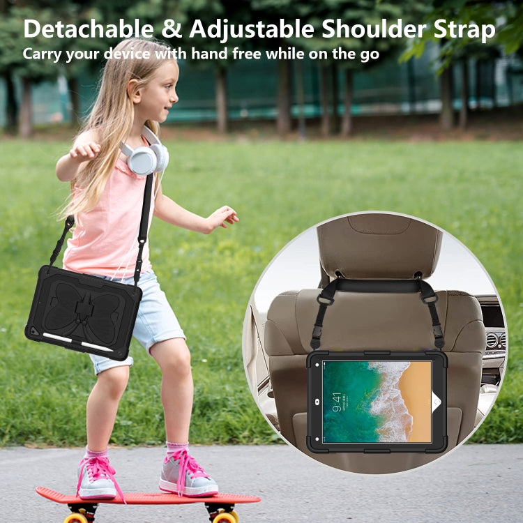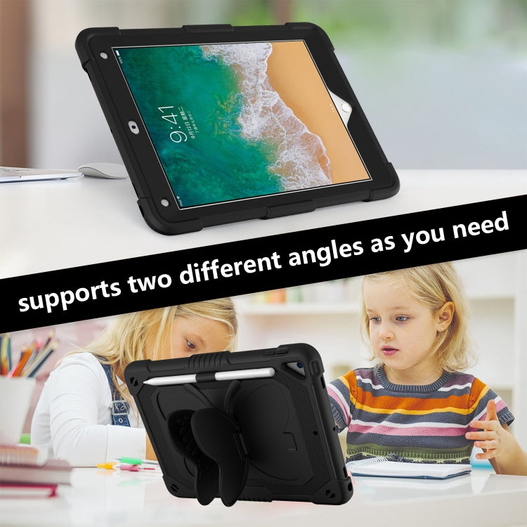 Pure Color PC + Silicone Anti-drop Protective Case with Butterfly Shape Holder & Pen Slot For iPad 9.7 2018 & 2017 / Pro 9.7 inch / Air 2 / 6(Black)