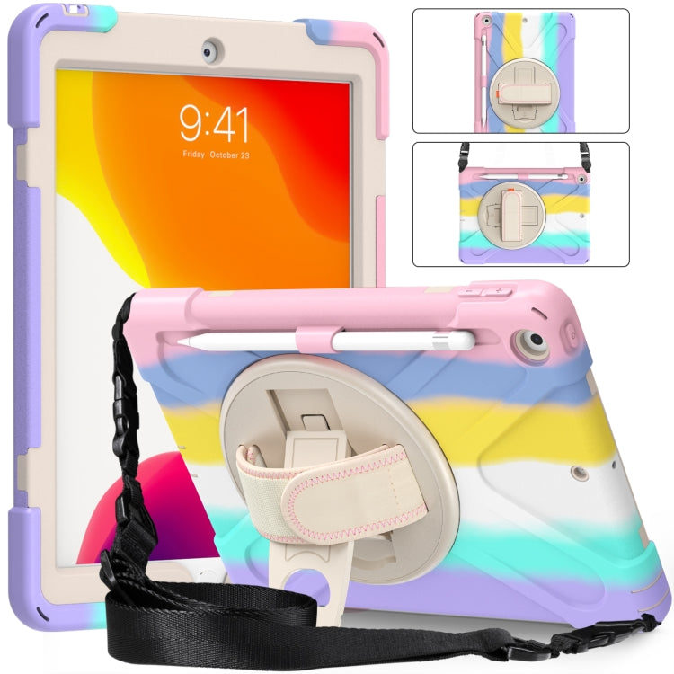 Shockproof Colorful Silicone + PC Protective Case with Holder & Shoulder Strap & Hand Strap For iPad 10.2 (2020)(Pink)