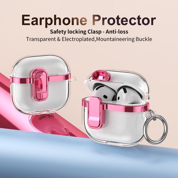 For AirPods Pro 2 Electroplating Transparent Wireless Earphones Case with Security Lock(Black)