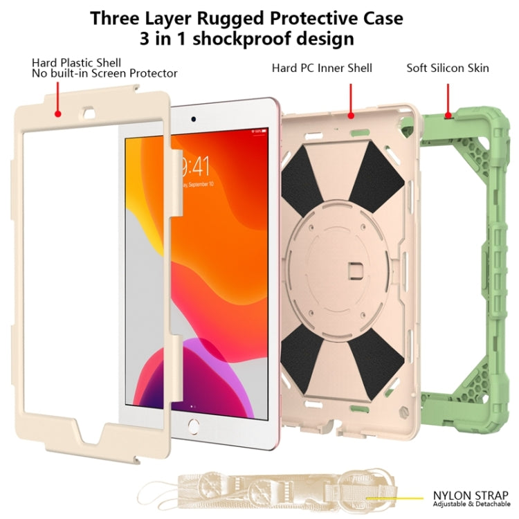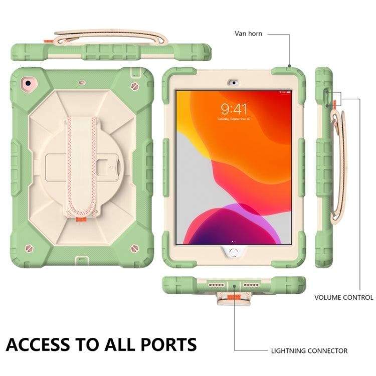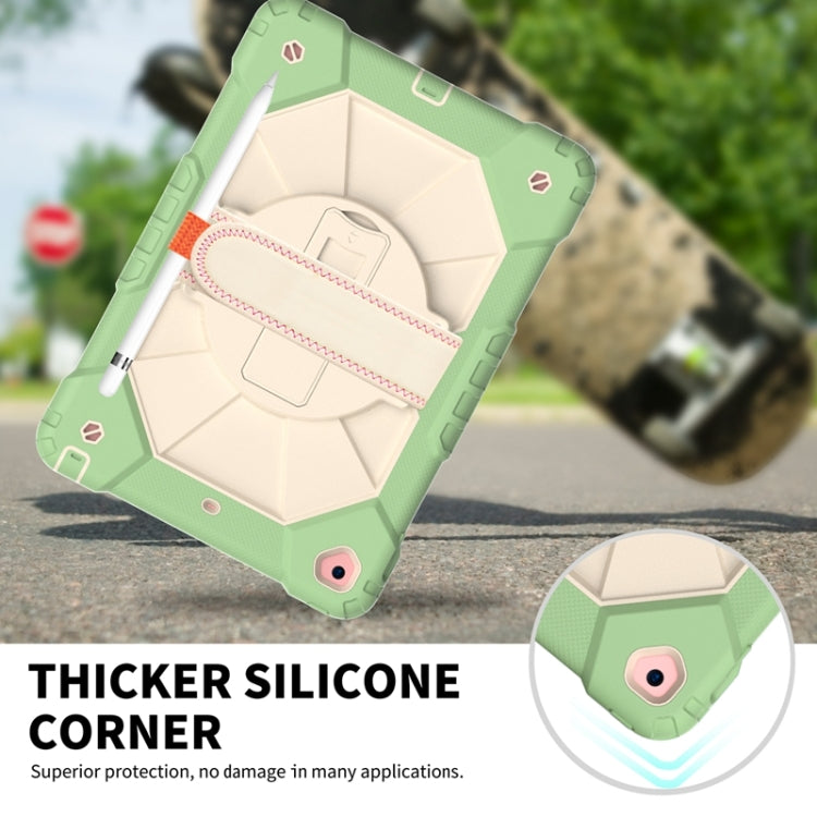 For iPad 10.2 2021 / 2020 / 2019 Contrast Color Robot Shockproof Silicon + PC Protective Case with Holder & Shoulder Strap(Matcha Green Beige)