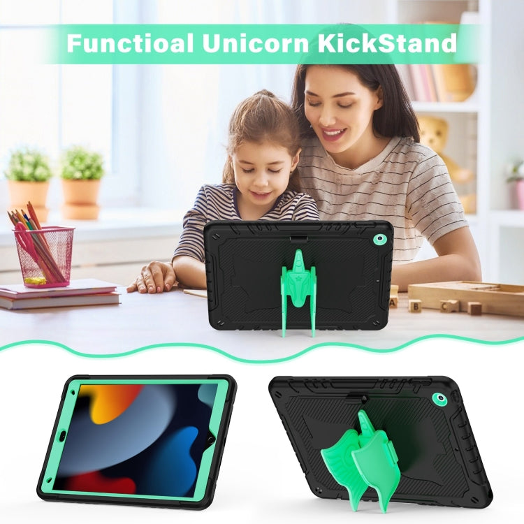 For iPad 10.2 2021/2020/2019 Kickstand PC Hybrid Silicone Tablet Case(Black Mint)