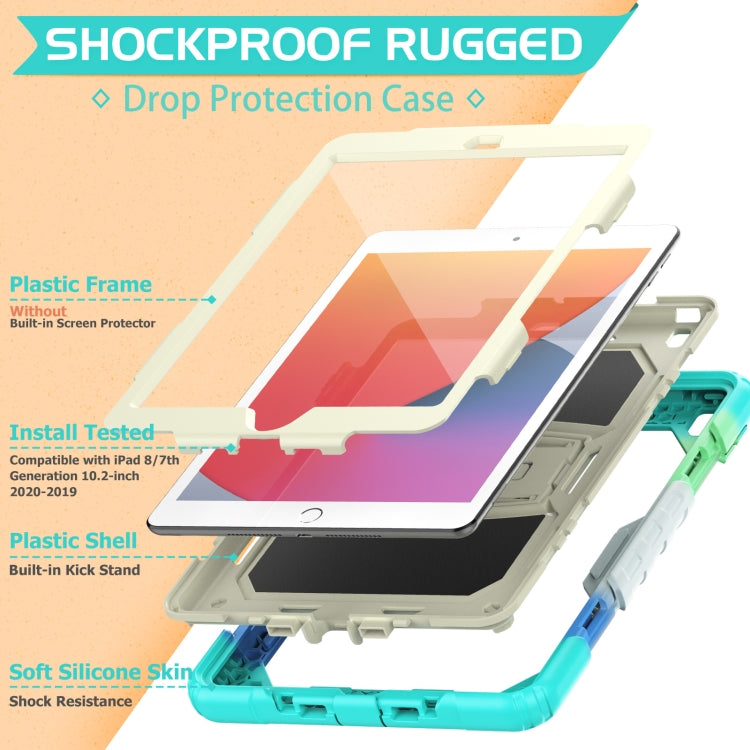 For iPad 10.2 2021 / 2020 / 2019 Shockproof Colorful Silica Gel + PC Protective Case with Holder & Shoulder Strap(Colorful Blue)