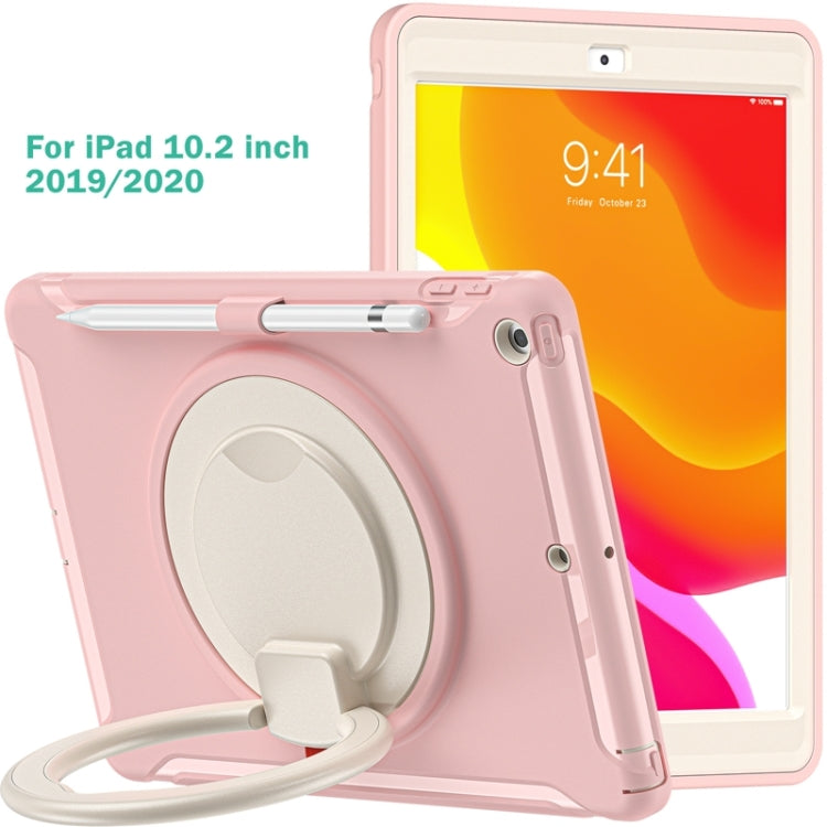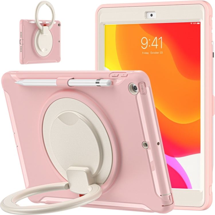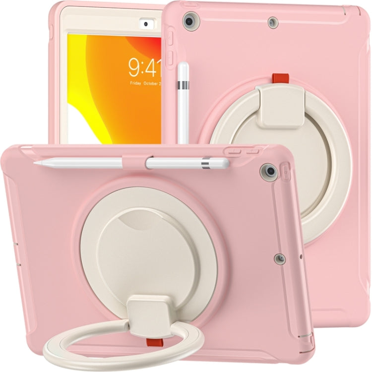 For iPad 10.2 2021 / 2020 / 2019 Shockproof TPU + PC Protective Case with 360 Degree Rotation Foldable Handle Grip Holder & Pen Slot(Cherry Blossoms Pink)