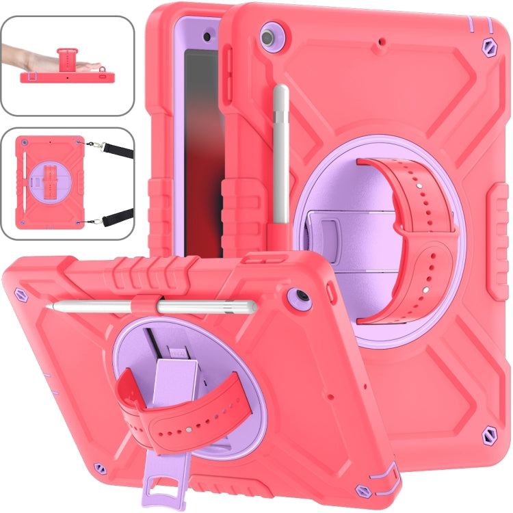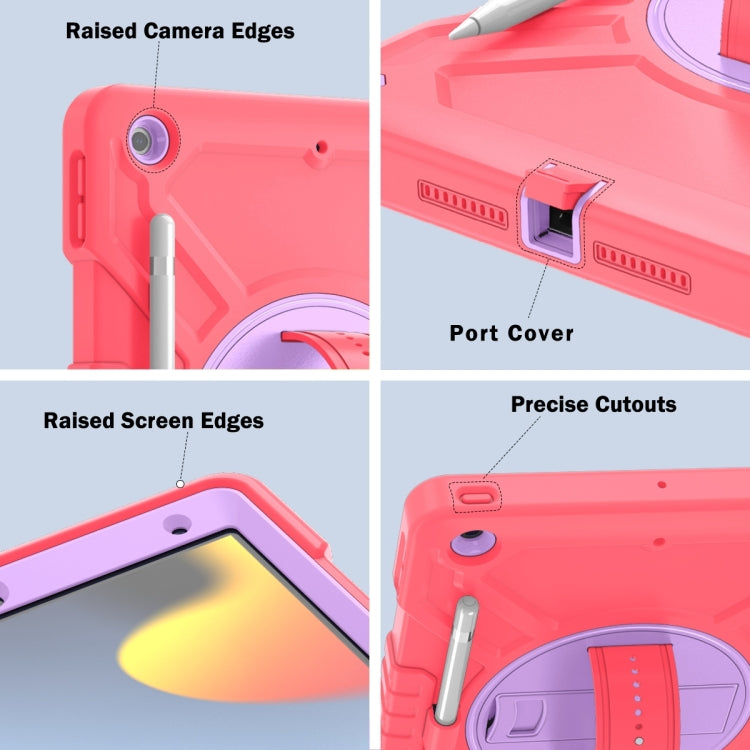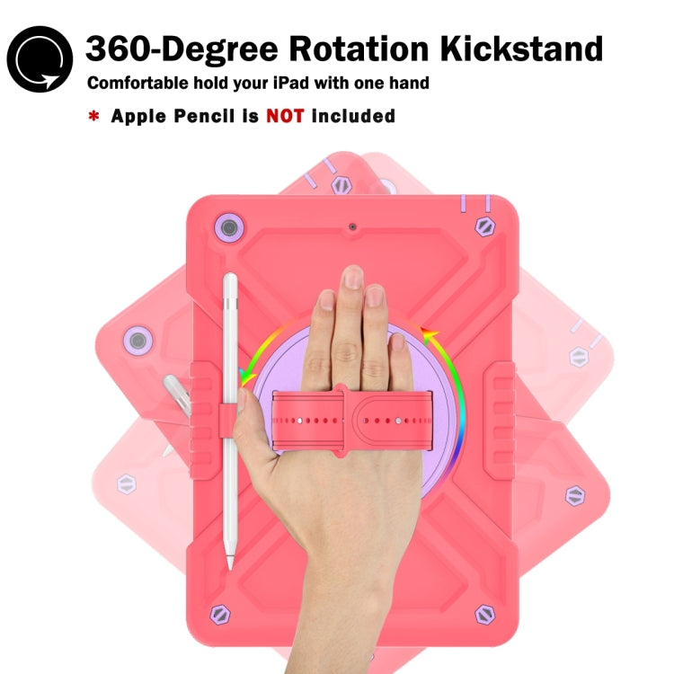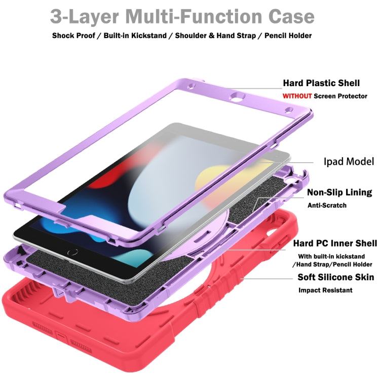 For iPad 10.2 2021 / 2020 / 2019 X Rotation PC Hybrid Silicone Tablet Case with Strap(Red Purple)