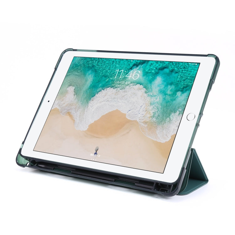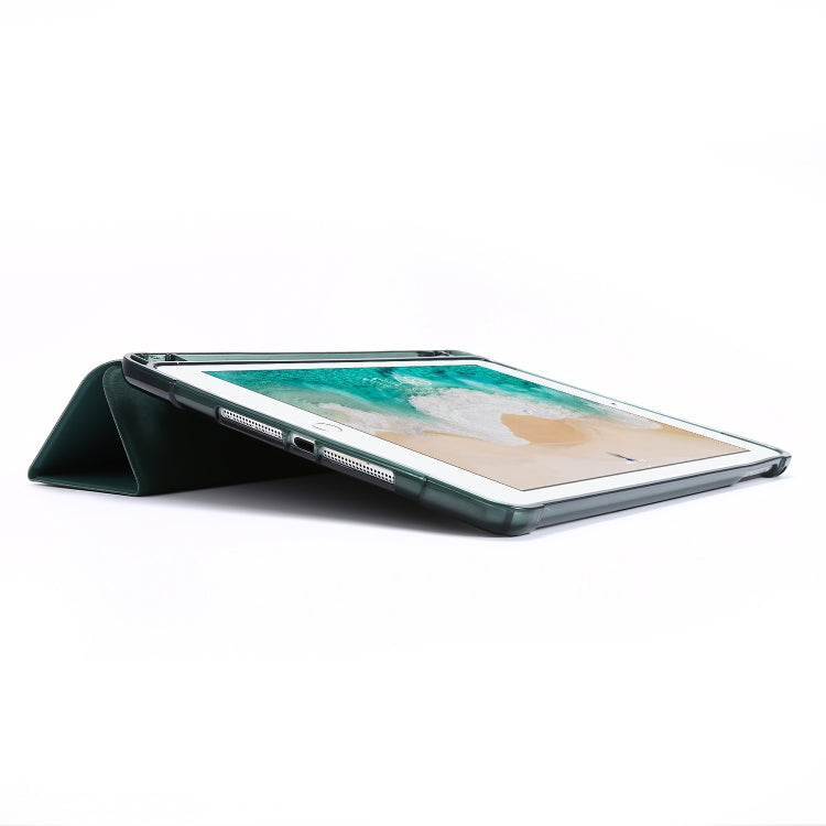 For iPad 9.7 (2018) & (2017) Airbag Horizontal Flip Leather Case with Three-fold Holder & Pen Holder(Dark Green)