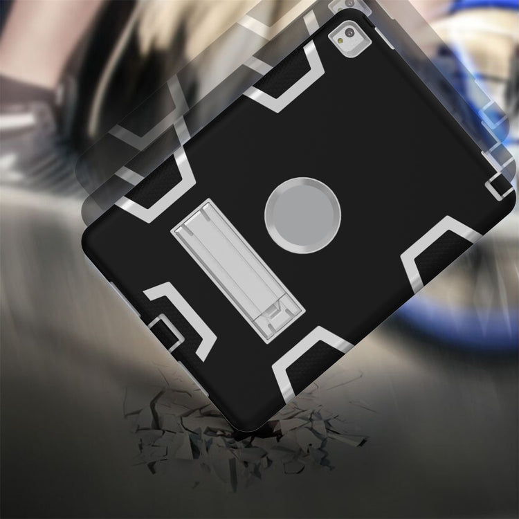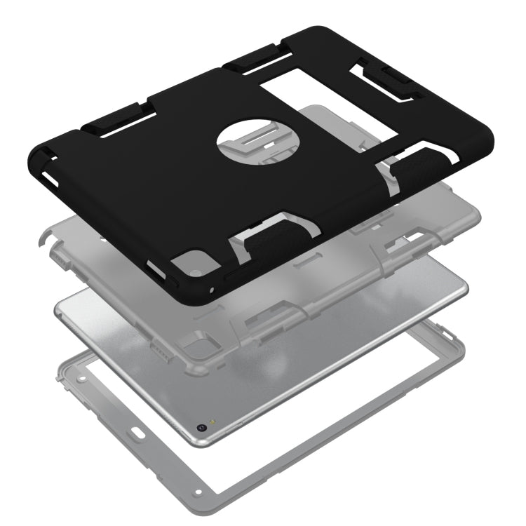 For iPad 9.7(2017) Shockproof PC + Silicone Protective Case,with Holder(Black Gray)