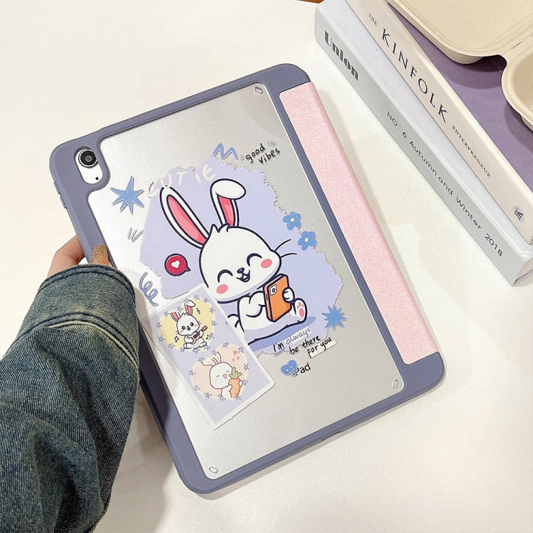For iPad Air 11 2024 / iPad Pro 11 2022 / 2021 / 2020 / 2018 Acrylic Painted 3-fold Holder Leather Tablet Case(Three Little Rabbits)