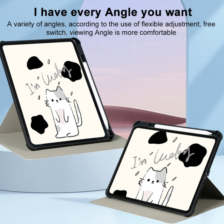 For iPad Air 11 2025 / 2024 3-Fold 360 Rotation Painted Leather Smart Tablet Case(Lucky Cat)