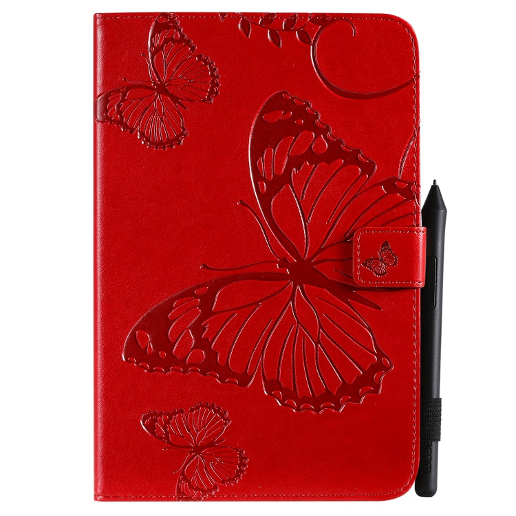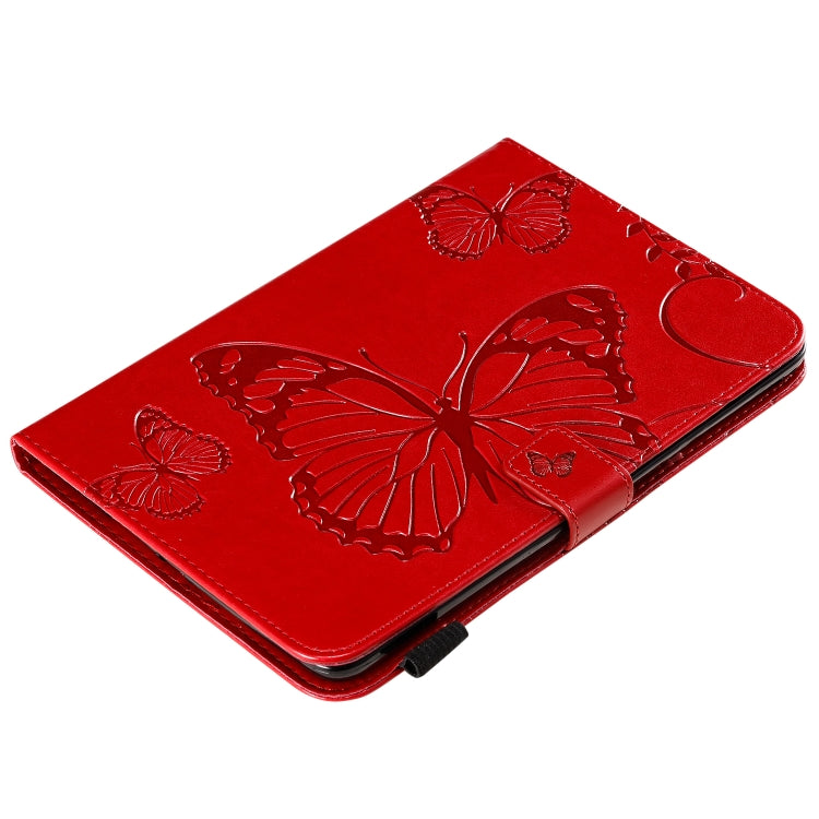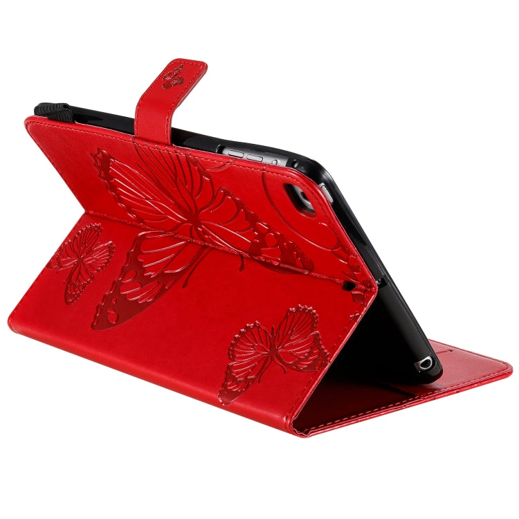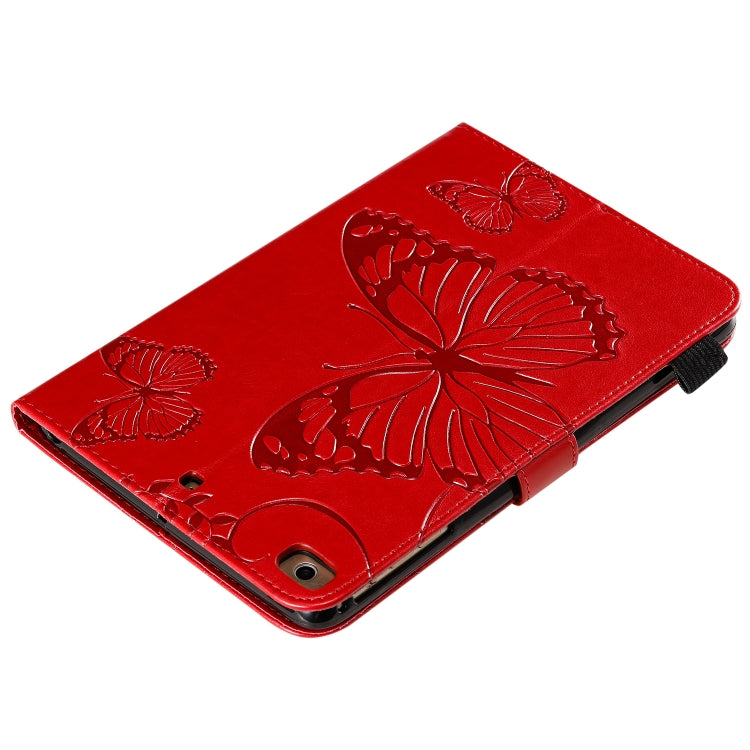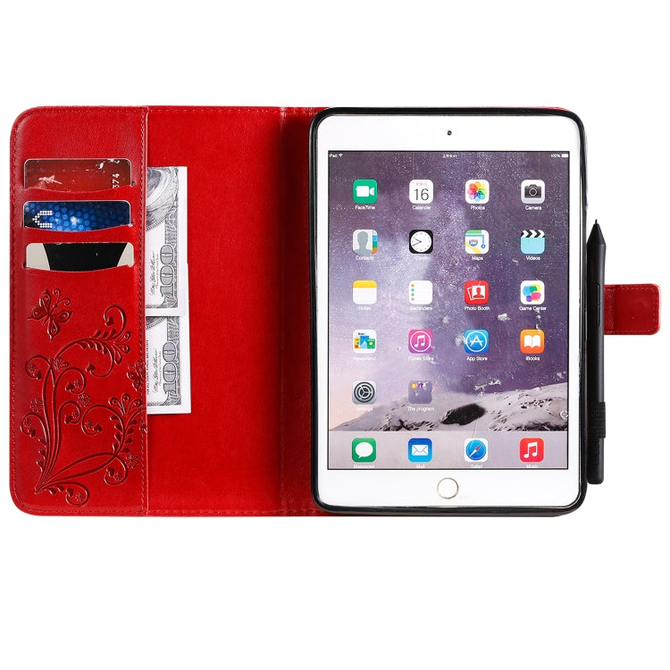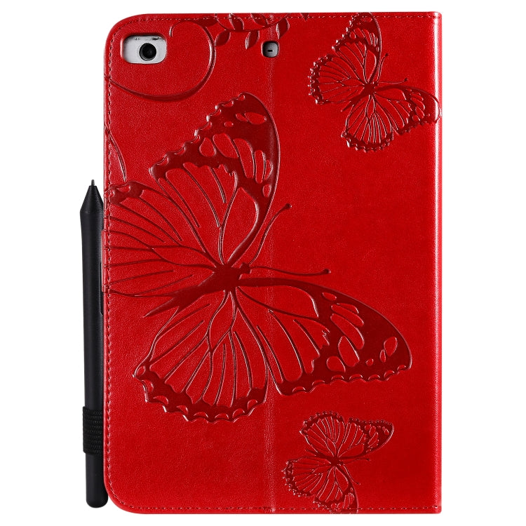 For iPad Mini 2019 & 4 & 3 & 2 & 1 Pressed Printing Butterfly Pattern Horizontal Flip PU Leather Case with Holder & Card Slots & Wallet & Pen Slot(Red)