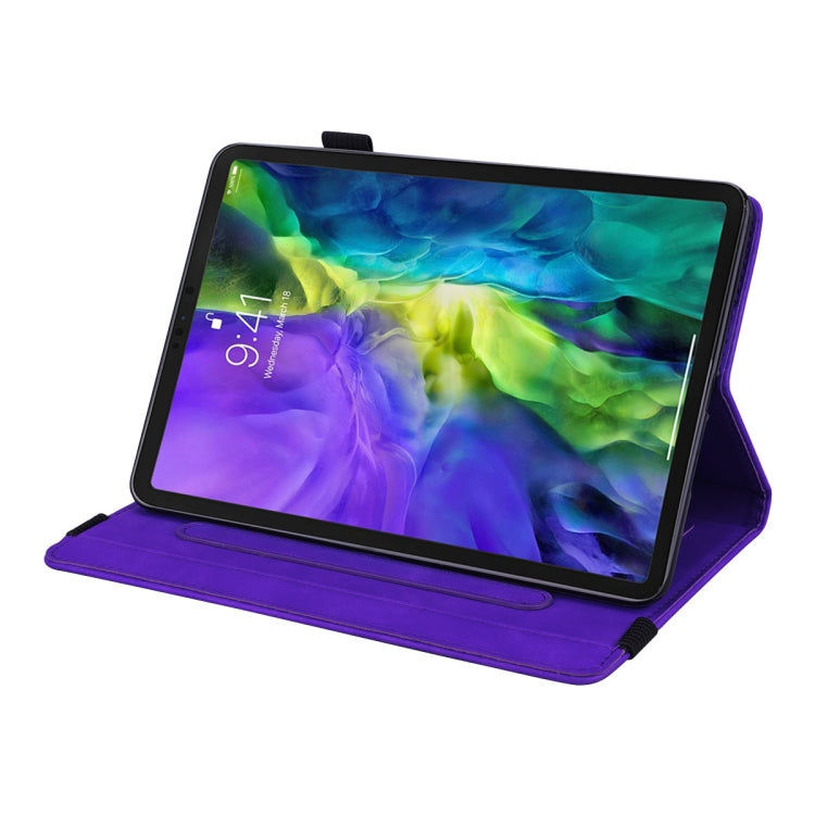 For iPad mini 2024 / mini 6 Calf Pattern Double Folding Design Embossed Leather Tablet Case with Holder & Card Slots & Pen Slot & Elastic Band(Purple)