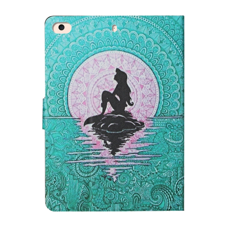 For iPad Mini 4 / 3 / 2 / 1 Colored Drawing Pattern Horizontal Flip Leather Case with Holder & Card Slots & Sleep / Wake-up Function(Mermaid)