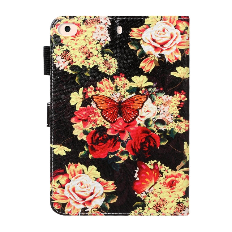 For iPad Mini 4 / 3 / 2 / 1 Cross Texture Painted Horizontal Leather Case with Sleep / Wake-up Function & Card Slot & Holder & Wallet(Black Peony Flower)
