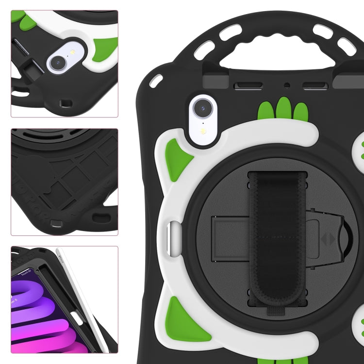 For iPad mini 6 / mini 2024 Cute Cat King Kids Shockproof Silicone Tablet Case with Holder & Shoulder Strap & Handle(Black Green)