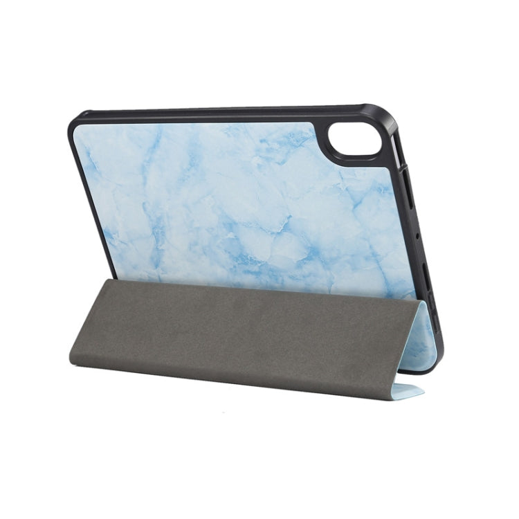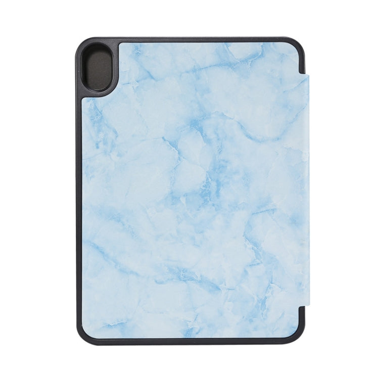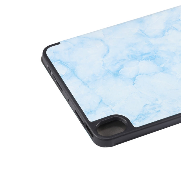 For iPad mini 6 / mini 2024 Marble Texture Smart Leather Tablet Case with 3-Folding Holder & Pen Slot(Blue)