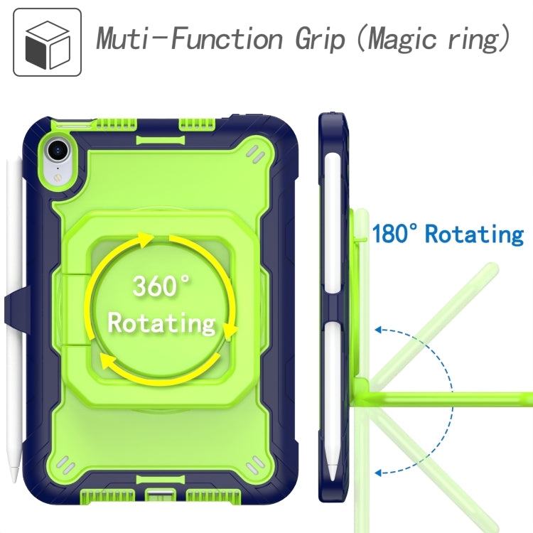 For iPad mini 2024 / mini 6 Silicone + PC Bracelet Holder Tablet Case(Navy Blue + Yellow Green)