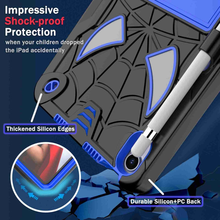 For iPad mini 6 Spider Texture Silicone Hybrid PC Tablet Case with Shoulder Strap(Black + Blue)