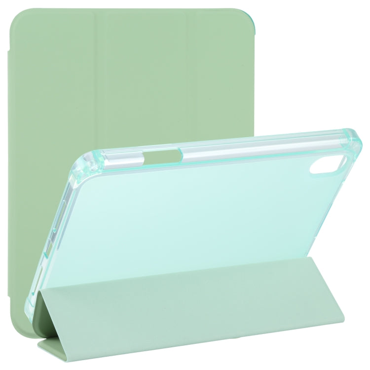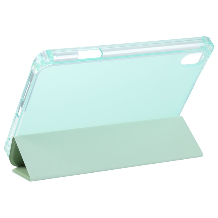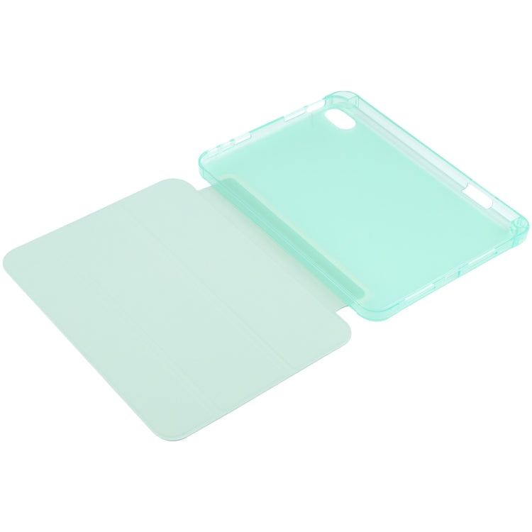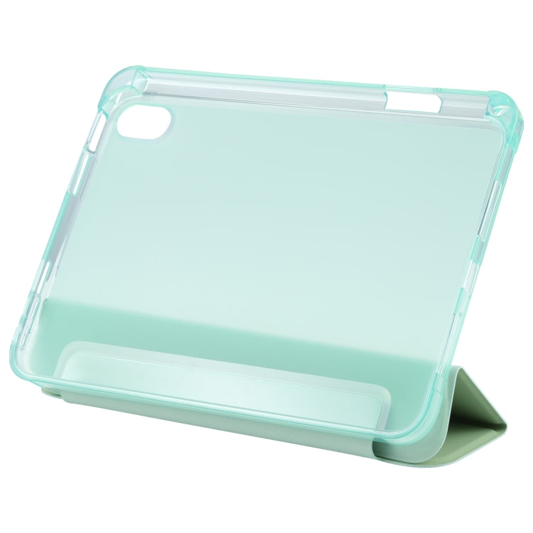 For iPad mini 2024 / mini 6 TPU Transparent Back Cover Horizontal Flip Leather Tablet Case with Three-folding Holder & Pen Slot(Green)