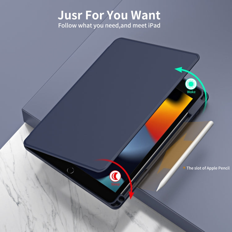 For iPad Pro 10.2 2021/2020/2019 Acrylic 360 Rotation Detachable Leather Tablet Case(Dark Blue)