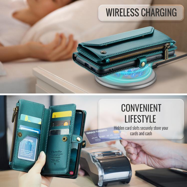 For Samsung Galaxy S25 5G CaseMe C36 Card Slots Zipper Wallet RFID Anti-theft Leather Phone Case(Blue)